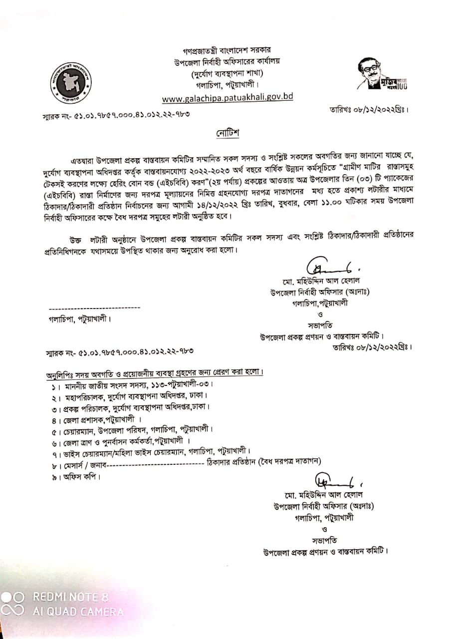 | ৫ | 2022-2023 অর্থ বছরে এইচবিবি ২য় পর্যায় প্রকল্পের তিনটি প্যাকেজের লটারীর নোটিশ। | | ০৮-১২-২০২২ | দেখুন |